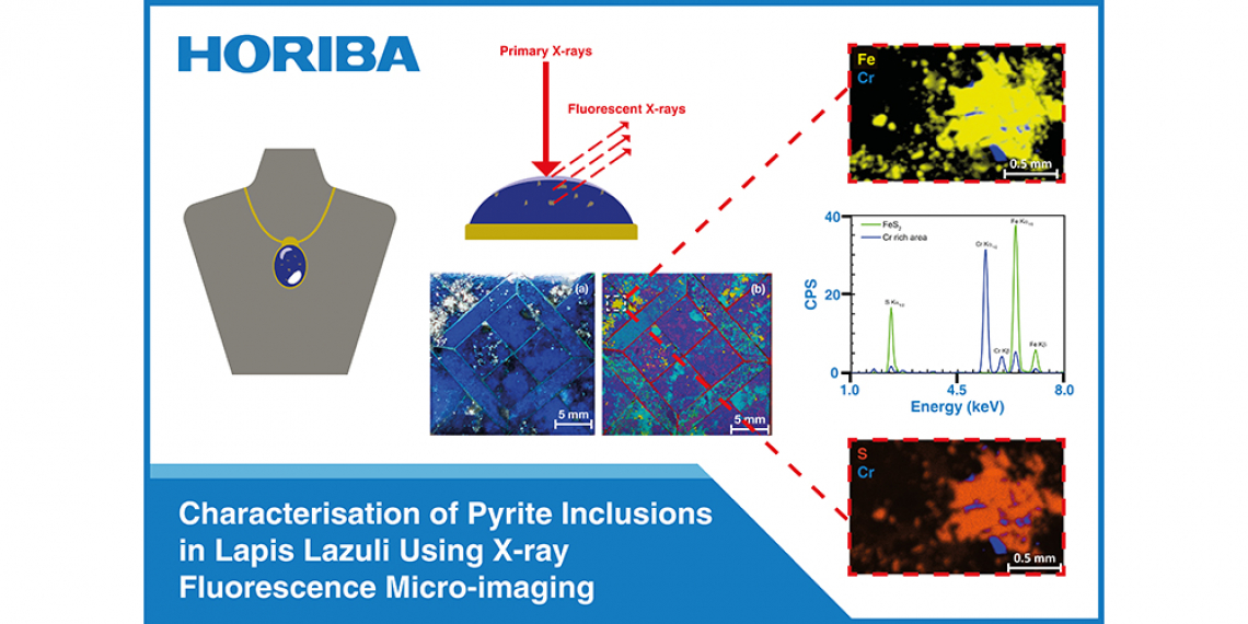 Lapis lazuli is a blue semi-precious gemstone of the sodalite group. These rocks are characterised by the presence of clusters of golden-coloured pyrite, whose size can vary making attractive patterns on the gemstones. µ-XRF imaging can return the elemental distribution in geological samples. It enables the identification of regions of interest and, with the availability of a high-resolution X-ray guide tube, performance of detailed mapping and point analysis. In this application note, pyrite impurities and major elements distribution in a commercial lapis lazuli pendant are studied.
