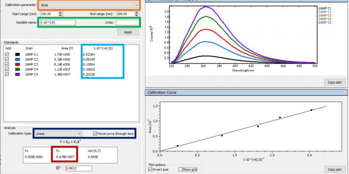 There are two optical methods for measuring the quantum yield: the absolute method and the relative method. In the absolute method, the quantum yield is measured directly using an integrating sphere, while in the relative method the fluorescence intensity of the unknown sample is compared with the fluorescence intensity of a standard sample to calculate the quantum yield of the unknown. In this application note, an Edinburgh Instruments FS5 spectrofluorometer is used to measure the quantum yield of 2-Aminopyridine (2AMP) via the relative method. 2AMP in sulfuric acid (H2SO4) has been previously used as a quantum yield reference standard in the UV-visible range. The quantum yield of 2AMP was measured to be 60 % in 1968 and 66 % in 1983. These literature quantum yield reference values are now decades old, and this note presents a reinvestigation and revaluation of the quantum yield of 2AMP in 1 M H2SO4 using quinine bisulphate (QBS) in 1 M H2SO4 as the reference standard with a modern spectrofluorometer.