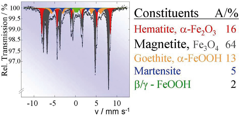 Figure 11. Routine Mössbauer analysis of finely dispersed corrosion particles formed in the cooling system of a power plant (reproduced from Reference 17 with permission).