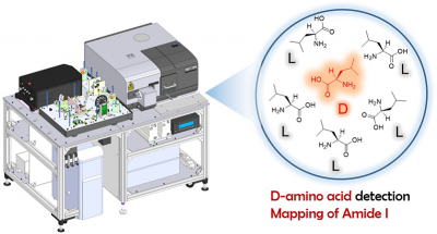 Scientists at have Ehime University have constructed a multidimensional vibrational circular dichroism spectroscopy (MutilD-VCD) for dipeptides and amino acids with D-amino acid residues in amides I and II regions. A quantum cascade laser (QCL) was installed as an infrared source to achieve high intensity and narrow focusing. A MultiD-VCD system with three coordinates (wavenumber, VCD intensity and position) was developed. The instrument was switchable to a concurrent FT-VCD (Fourier transform vibrational circular dichroism) system. A scanning device was installed to move an attached motorised stage in two dimensions.