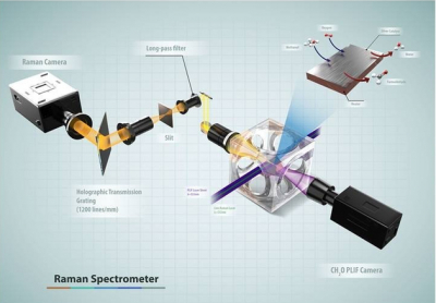 To help address this knowledge gap, researchers from Sandia National Laboratories in collaboration with the University of California-Davis and Lund University in Sweden have developed a suite of approaches to improve understanding of the interactions between the catalyst surface and the near-surface gases at conditions relevant to actual operating catalysts. The researchers performed spatially resolved gas-phase measurements of stable and reactive species above the catalyst surface, using near-surface 2D laser-induced fluorescence imaging, 1D Raman scattering and molecular beam mass spectrometry (MBMS). Planar laser-induced fluorescence and Raman scattering provided rapid, non-intrusive imaging of CH3OH, O2, CH2O, H2O and temperature with high spatial resolution, whereas mass spectrometry detected all species simultaneously with lower spatial resolution, including unexpected species for which the formation mechanism remains uncertain.