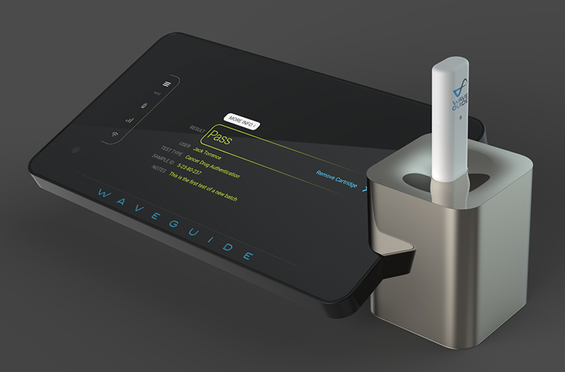 Formµla is a battery-operated, portable time-domain NMR device. It has been designed to provide pass/fail answers to the analysis of unknowns against examples of “good” samples it has been trained on. All analytical decisions are made on-board the device, but analysis results can be uploaded to cloud servers via WiFi or cellular connections. This is of particular value when the instrument is being used to track outbreaks of disease or threats of counterfeit products, for example. Single-use sample tubes with RFID identification are required for analysis.