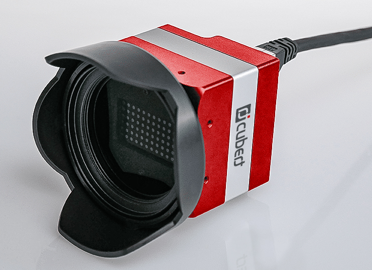 Cubert has introduced the ULTRIS hyperspectral light field camera. During image acquisition the object is recorded with a multitude of images, each with its own optical bandpass filter with different centre wavelength. This is made possible by combining a continuously variable bandpass filter with a lenslet array. The camera features an Ultra-HD CMOS sensor with 20 Mpx. It has a native resolution of 400 × 400 px, resulting in 160,000 spectra, each with 100 spectral bands covering 450–850 nm, taken in a single snapshot.