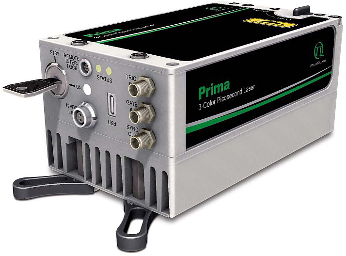 PicoQuant has introduced the Prima that generates laser light at 635, 510 and 450 nm with each colour being emitted individually, one at a time. These three wavelengths cover most of the excitation needs for routine excitation in spectroscopy or microscopy applications. The new laser module supports pulsed operation with repetition rates up to 200 MHz, continuous wave (CW) mode as well as fast switching CW capability with a rise/fall time of <3 ns. In pulsed mode, each wavelength can achieve an average optical output power of typically 5 mW, and up to 50 mW in CW mode. The Prima does not require any additional laser driver. All settings and operating parameters are fully computer controlled via a WindowsTM based control software.