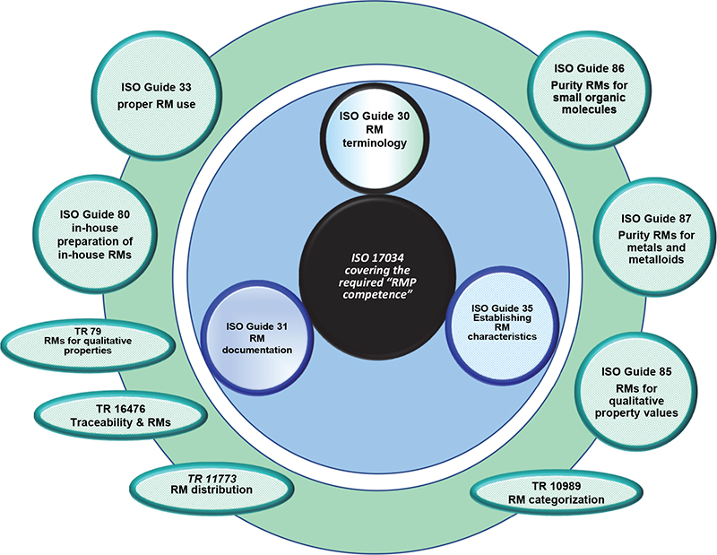 • The adjacent ring provides the associated Guide documents, which are either normative references to ISO 17034, or at the very least should be used for additional guidance associated with ISO 17034.