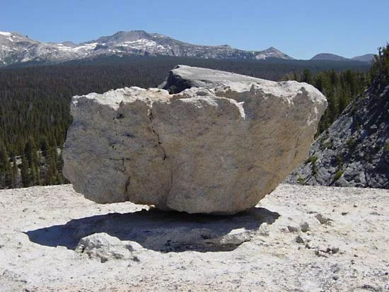Figure 4. Archetypal “erratic”. The composition of the conspicuous rock may be similar to the local rock types (short distance travelled only) but, much more often, is of markedly different habitus [travelled over long(er) distances]. CredIt: Daniel Mayer, Creative Commons Attribution-Share Alike 1.0 Generic, Encyclopædia Britannica