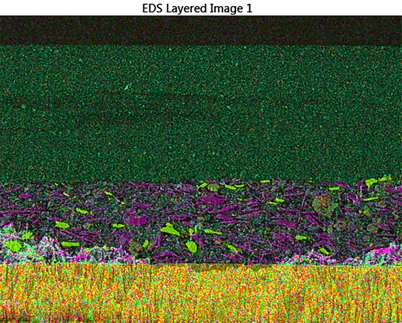 One of the most efficient systems with active corrosion inhibition properties involves chromate pigments. However, due to toxicity concerns, markets and regulations require the use of more environmentally-friendly, yet equally or even better-performing, alternatives. Surprisingly, despite the fact that anticorrosive pigments have been commonly used for many years, the mechanism of their performance is not fully understood; particularly when incorporated into an organic coating. Therefore, the development of new anticorrosion solutions is based on screening tests that do not consider mechanisms of processes occurring in the coatings. Corrosion inhibitors and their interactions with protected surfaces are investigated, but how they function in the coating system is not clear, especially regarding their leaching and migration towards the protected surface. This is one of the main obstacles in effective development of new systems.2 Notably, coatings are complex systems that also contain other pigments/fillers which can influence the migration process. A cross-section of a conventional coating system (i.e. primer + top coat) imaged using SEM (scanning electron microscopy) is shown in Figure 1(a), while the additional chemical/analytical information that can be gleaned from the application of energy dispersive X-ray spectroscopy (EDS) is shown in Figure 1(b).
